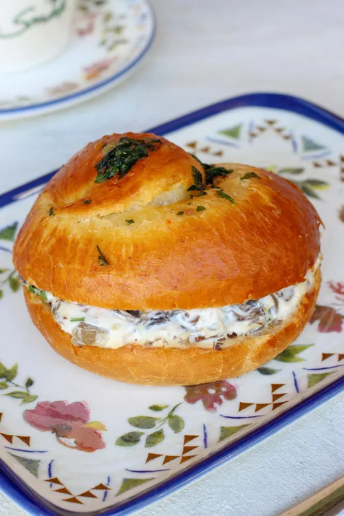 Oyster mushrooms, chestnut mushrooms, parmesan, cream cheese, basil, garlic, parsley
